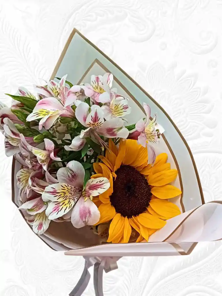 1 Girasol con Astromelias, para dar el inicio de una nueva temporada de amor, cariño y ternura.