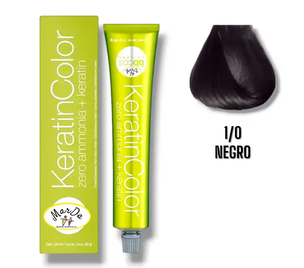1/0 Negro Tintura Keratincolor Sin Amoniaco + Keratina 100 Ml Bbcos