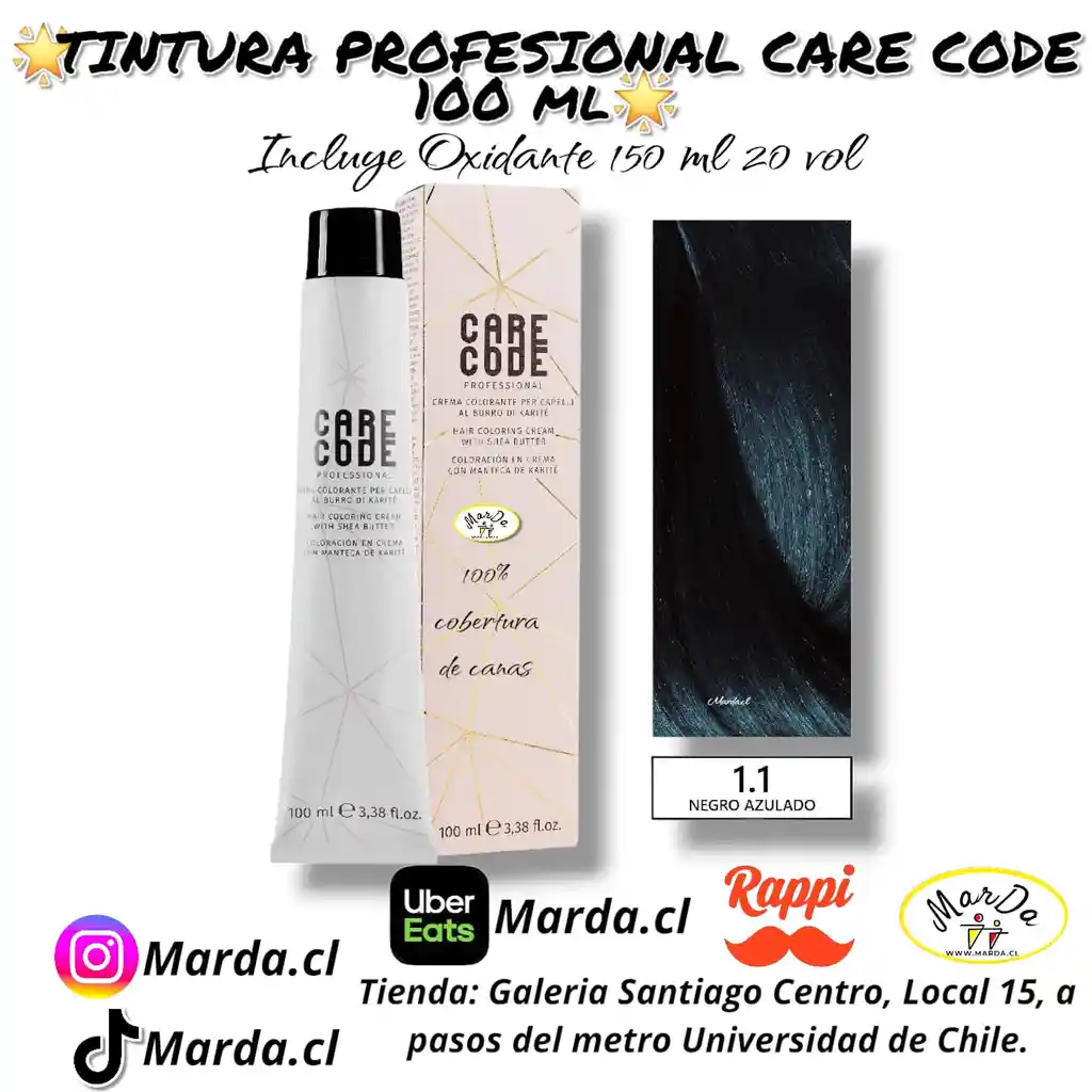 1.1 NEGRO AZULADO TINTURA CARE CODE 100 ML + AGUA OXIGENADA 20 V 150 ML