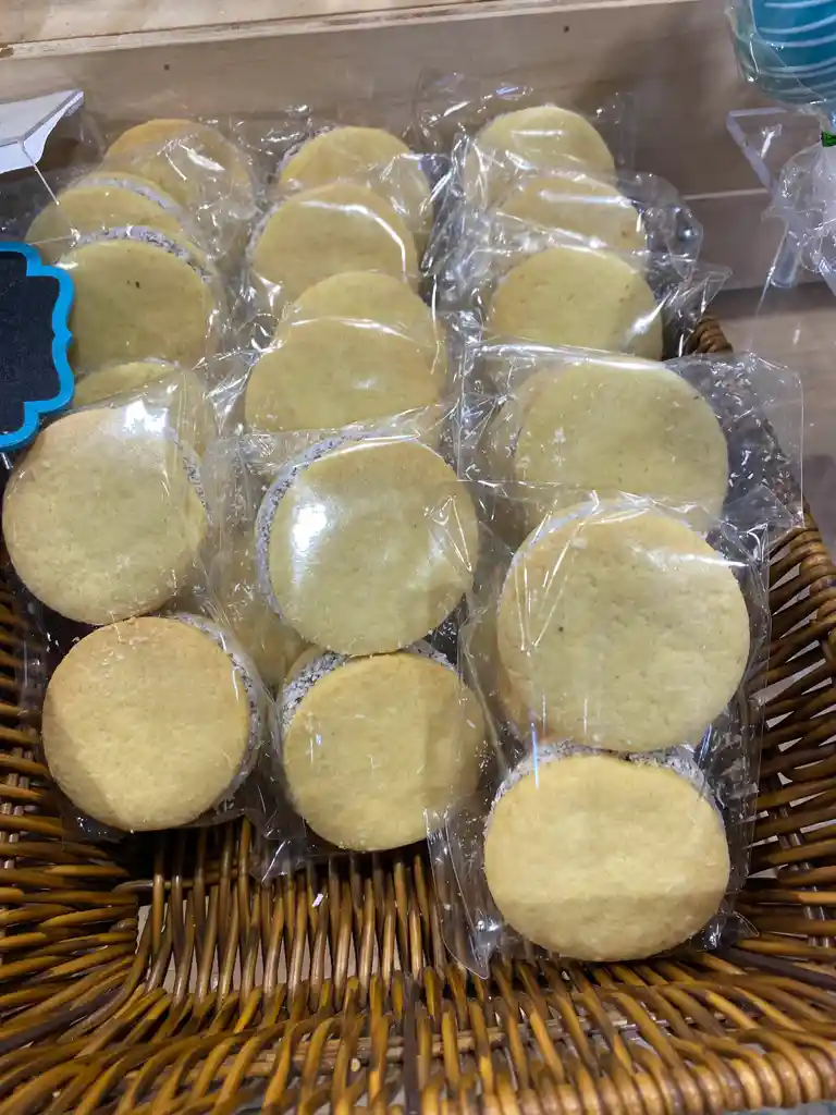 Bolsa individual con 2 unidades de alfajor de maicena, relleno de dulce de leche con coco.