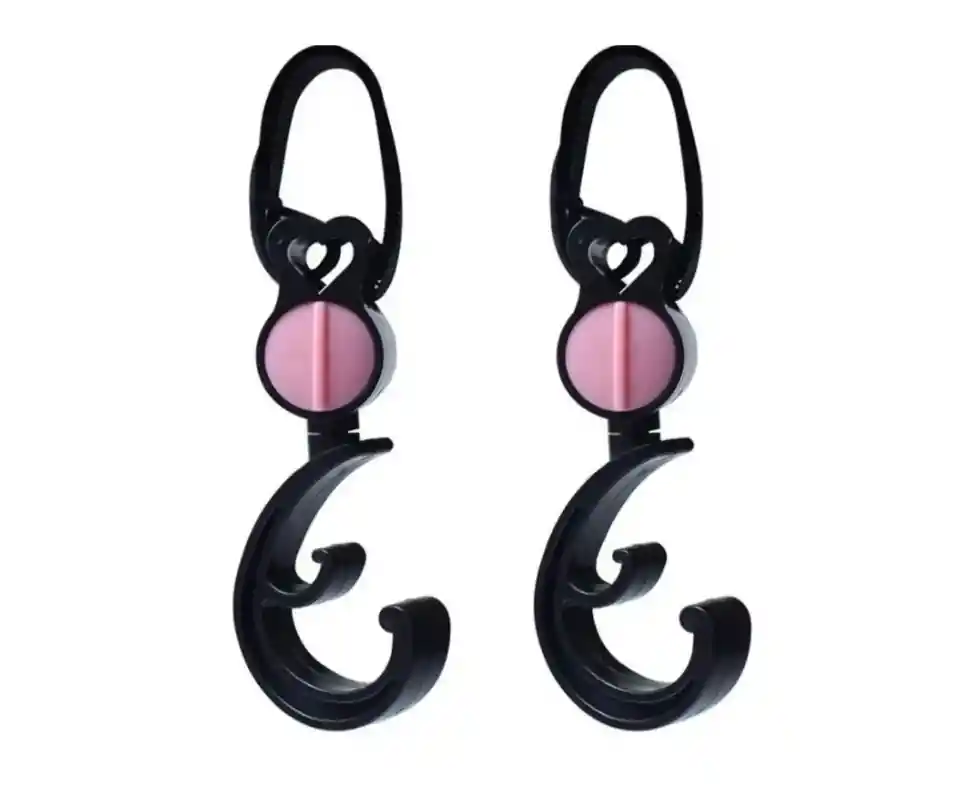 Material: ABS 2 unidades por paquete Características 1. El cuerpo del gancho se puede girar 360 grados 2. Diseño fuerte de nailon, adecuado para cualquier tamaño de cochecito de bebé 3. Se puede combinar la capacidad de ambos para mayor capacidad de peso Disponible solo color negro