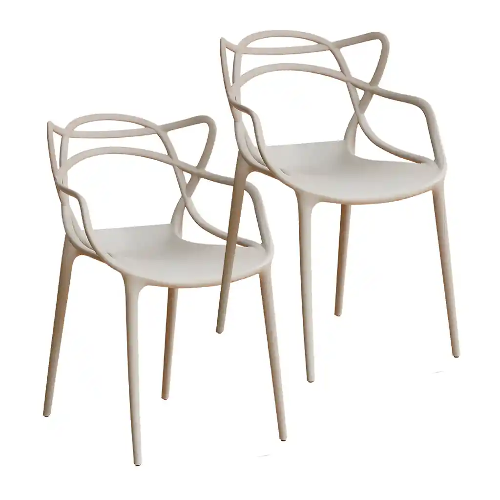 2 Sillas Comedor Terraza Master Resistente Respaldo Apoyabrazos Beige Descubre la Silla Master de colores, una pieza icónica del diseño contemporáneo que combina elegancia, funcionalidad y confort en un solo producto. Inspirada en las tendencias que marcaron estilo desde 1950, esta silla se reinventa para adaptarse a espacios modernos, minimalistas, industriales o incluso rústicos. El color negro aporta un toque sofisticado y versátil, ideal para integrarse fácilmente en comedores, salas de estar, oficinas o espacios exteriores. Su estructura ergonómica y líneas entrelazadas no solo brindan un diseño atractivo, sino también excelente estabilidad y resistencia. A parte tenemos disponibilidad en diferentes colores. Su respaldo ergonómico proporciona un soporte cómodo y firme, permitiendo una experiencia de sentado placentera incluso por períodos prolongados. Gracias a su fabricación en polipropileno, es resistente a las inclemencias del tiempo, lo que la hace apta tanto para interiores como exteriores Ligera, resistente y fácil de combinar, la Silla Master es perfecta para quienes buscan diseño de vanguardia con máxima funcionalidad. Renueva tu espacio con una pieza que equilibra estilo, comodidad y durabilidad. ¡Haz que tu ambiente destaque con la elegancia atemporal de la Silla Master! Características principales: - Material: Polipropileno de alta calidad, acabado mate. - Color: Beige - Altura total: 82.5 m. - Ancho: 54 cm. - Profundidad: 56 cm. - Altura del asiento al suelo: 46 cm. - Peso: 5 kg. - Capacidad de carga: Hasta 150 kg. - Requiere ensamblado: No - Contenido de paquete: 2 Sillas Comedor Terraza Master Resistente Respaldo Apoyabrazos Colores. Ideal para: - Comedor - Oficina - Sala de estar