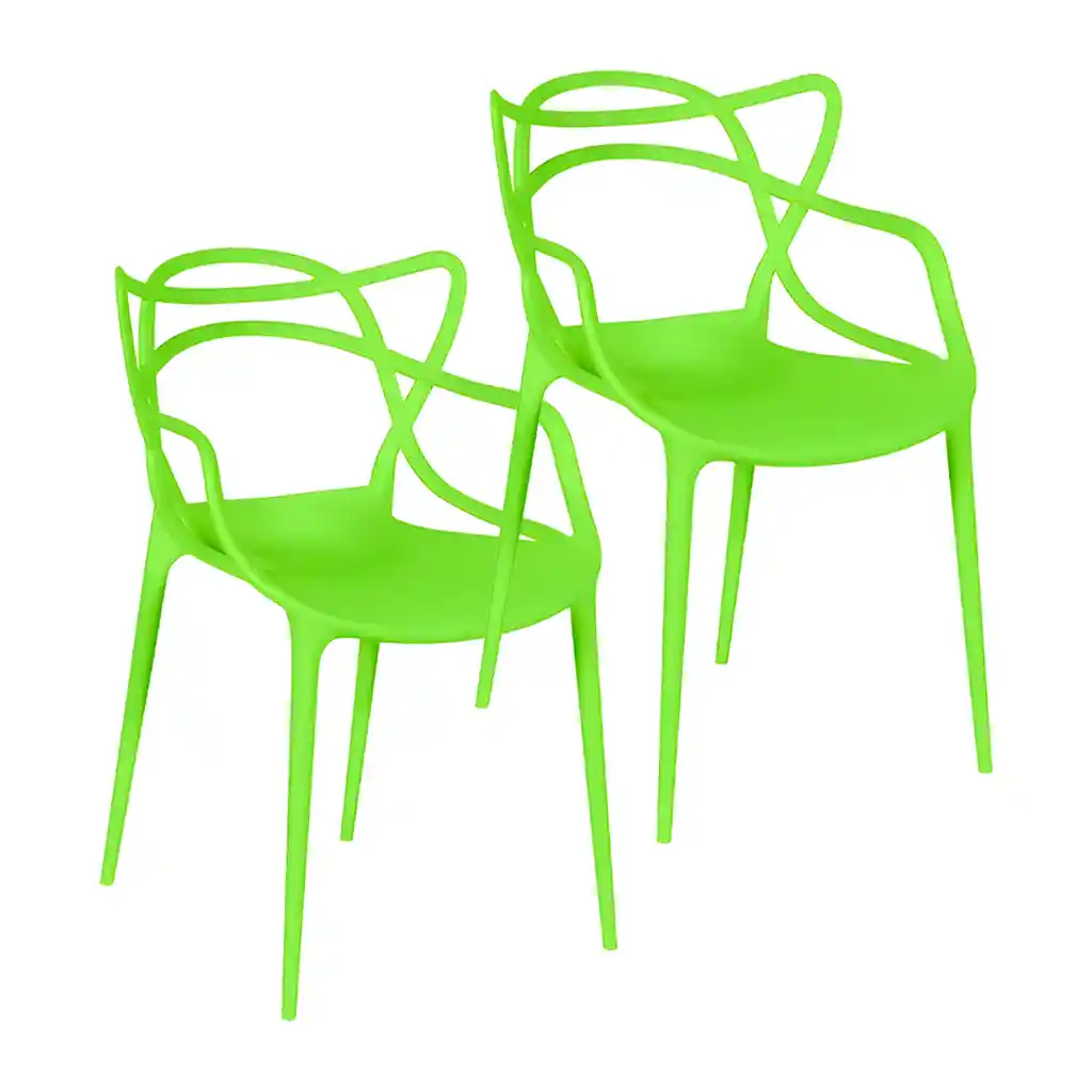 2 Sillas Comedor Terraza Master Resistente Respaldo Apoyabrazos Verde Descubre la Silla Master de colores, una pieza icónica del diseño contemporáneo que combina elegancia, funcionalidad y confort en un solo producto. Inspirada en las tendencias que marcaron estilo desde 1950, esta silla se reinventa para adaptarse a espacios modernos, minimalistas, industriales o incluso rústicos. El color negro aporta un toque sofisticado y versátil, ideal para integrarse fácilmente en comedores, salas de estar, oficinas o espacios exteriores. Su estructura ergonómica y líneas entrelazadas no solo brindan un diseño atractivo, sino también excelente estabilidad y resistencia. A parte tenemos disponibilidad en diferentes colores. Su respaldo ergonómico proporciona un soporte cómodo y firme, permitiendo una experiencia de sentado placentera incluso por períodos prolongados. Gracias a su fabricación en polipropileno, es resistente a las inclemencias del tiempo, lo que la hace apta tanto para interiores como exteriores Ligera, resistente y fácil de combinar, la Silla Master es perfecta para quienes buscan diseño de vanguardia con máxima funcionalidad. Renueva tu espacio con una pieza que equilibra estilo, comodidad y durabilidad. ¡Haz que tu ambiente destaque con la elegancia atemporal de la Silla Master! Características principales: - Material: Polipropileno de alta calidad, acabado mate. - Color: Verde - Altura total: 82.5 m. - Ancho: 54 cm. - Profundidad: 56 cm. - Altura del asiento al suelo: 46 cm. - Peso: 5 kg. - Capacidad de carga: Hasta 150 kg. - Requiere ensamblado: No - Contenido de paquete: 2 Sillas Comedor Terraza Master Resistente Respaldo Apoyabrazos Colores. Ideal para: - Comedor - Oficina - Sala de estar