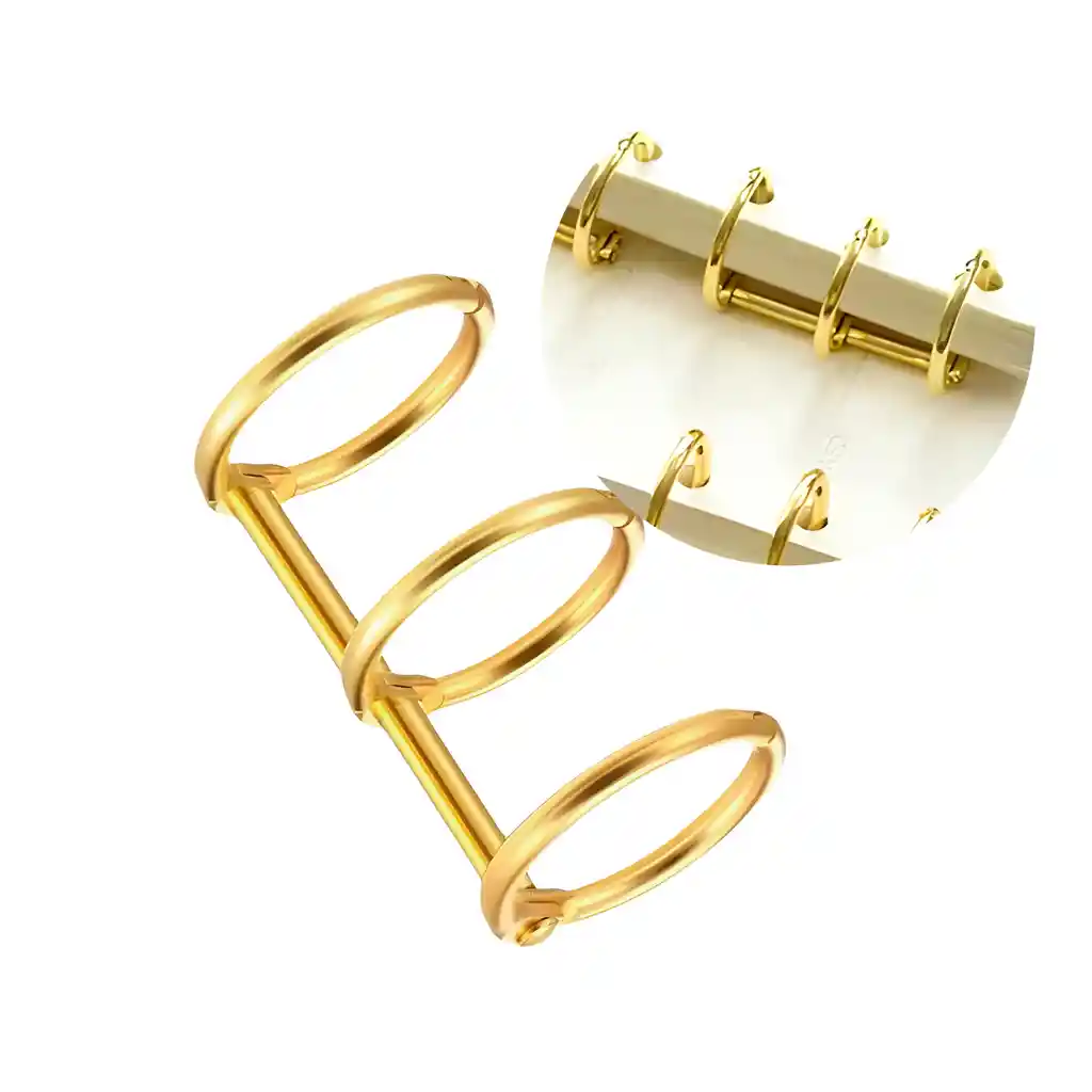20 Anillas Metalicos Encuadernación 3 Ganchos Dorado 2.2 X 1.5 Cm Estos de anillos metálicos para encuadernación destaca por sus colores vibrantes en Dorado, ademas el acabado brillante les da un toque moderno y elegante. Están fabricados en metal galvanizado de alta resistencia, lo que los hace reutilizables y duraderos. Cada anillo puede contener hasta 100 hojas de papel estándar, lo que los convierte en una excelente opción para organizar tus documentos, cuadernos o proyectos creativos. Los aros tienen una superficie lisa y pulida, con una apertura que permite girar las páginas fácilmente. Su diseño plegable permite una apertura de hasta 300 grados, facilitando el uso y la manipulación del material encuadernado sin esfuerzo. Son ideales para trabajos de encuadernación manual, como proyectos de papelería personalizada, álbumes, carpetas o libretas artesanales. Gracias a su firmeza, los aros metálicos se mantienen cerrados de forma segura, aunque pueden requerir un poco de fuerza para abrirlos debido a su buen ajuste. Esto garantiza que las hojas permanezcan en su lugar sin soltarse, lo cual es clave para mantener el orden en tus documentos o creaciones. Excelente para múltiples proyectos sin tener que preocuparte por reponerlos pronto. Son perfectos para fabricar diarios de viaje, álbumes de fotos, calendarios de escritorio, cuadernos personalizados o incluso libros de recuerdos. Compatibles con la mayoría de los tamaños de hojas y cuadernos, estos anillos son una solución práctica, estética y funcional para organizar y personalizar tu papelería. Fabricados en acero inoxidable de varias capas, son resistentes al agua, no se oxidan fácilmente y no se quiebran, lo que garantiza un uso prolongado incluso con el paso del tiempo. Su sistema de remache giratorio permite abrirlos y cerrarlos con seguridad, manteniendo un ajuste firme y confiable. Especificaciones: Diseño: 3 Ganchos. Color: Dorado Tamaño: 2.2 X 1.5 CM Uso: Encuadernacion Contenido de paquete: 1 Anillo Metalico 2.2 X 1.5 CM.