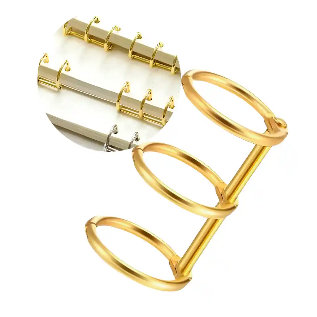 20 Anillas Metalicos Encuadernación 3 Ganchos Dorados 2.5 X 2 Cm Estos de anillos metálicos para encuadernación destaca por sus colores vibrantes en Dorado, ademas el acabado brillante les da un toque moderno y elegante. Están fabricados en metal galvanizado de alta resistencia, lo que los hace reutilizables y duraderos. Cada anillo puede contener hasta 100 hojas de papel estándar, lo que los convierte en una excelente opción para organizar tus documentos, cuadernos o proyectos creativos. Los aros tienen una superficie lisa y pulida, con una apertura que permite girar las páginas fácilmente. Su diseño plegable permite una apertura de hasta 300 grados, facilitando el uso y la manipulación del material encuadernado sin esfuerzo. Son ideales para trabajos de encuadernación manual, como proyectos de papelería personalizada, álbumes, carpetas o libretas artesanales. Gracias a su firmeza, los aros metálicos se mantienen cerrados de forma segura, aunque pueden requerir un poco de fuerza para abrirlos debido a su buen ajuste. Esto garantiza que las hojas permanezcan en su lugar sin soltarse, lo cual es clave para mantener el orden en tus documentos o creaciones. Excelente para múltiples proyectos sin tener que preocuparte por reponerlos pronto. Son perfectos para fabricar diarios de viaje, álbumes de fotos, calendarios de escritorio, cuadernos personalizados o incluso libros de recuerdos. Compatibles con la mayoría de los tamaños de hojas y cuadernos, estos anillos son una solución práctica, estética y funcional para organizar y personalizar tu papelería. Fabricados en acero inoxidable de varias capas, son resistentes al agua, no se oxidan fácilmente y no se quiebran, lo que garantiza un uso prolongado incluso con el paso del tiempo. Su sistema de remache giratorio permite abrirlos y cerrarlos con seguridad, manteniendo un ajuste firme y confiable. Especificaciones: Diseño: 3 Ganchos. Color: Dorado Tamaño: 2.5 X 2 Cm Uso: Encuadernacion Contenido de paquete: 1 Anillo Metalico 2.5 X 2 Cm
