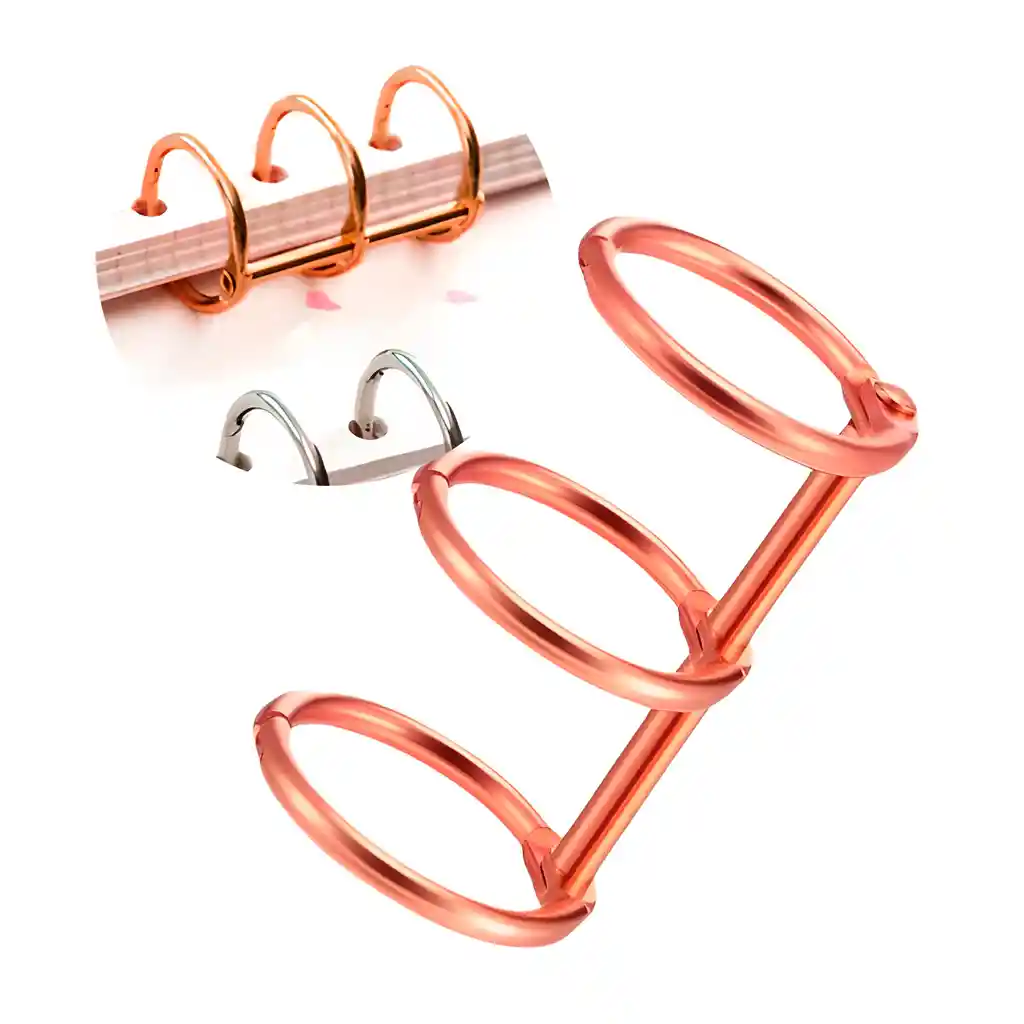 20 Anillas Metalicos Encuadernación 3 Ganchos Oro Rosa 2.5 X 2 Cm Estos de anillos metálicos para encuadernación destaca por sus colores vibrantes en Dorado, ademas el acabado brillante les da un toque moderno y elegante. Están fabricados en metal galvanizado de alta resistencia, lo que los hace reutilizables y duraderos. Cada anillo puede contener hasta 100 hojas de papel estándar, lo que los convierte en una excelente opción para organizar tus documentos, cuadernos o proyectos creativos. Los aros tienen una superficie lisa y pulida, con una apertura que permite girar las páginas fácilmente. Su diseño plegable permite una apertura de hasta 300 grados, facilitando el uso y la manipulación del material encuadernado sin esfuerzo. Son ideales para trabajos de encuadernación manual, como proyectos de papelería personalizada, álbumes, carpetas o libretas artesanales. Gracias a su firmeza, los aros metálicos se mantienen cerrados de forma segura, aunque pueden requerir un poco de fuerza para abrirlos debido a su buen ajuste. Esto garantiza que las hojas permanezcan en su lugar sin soltarse, lo cual es clave para mantener el orden en tus documentos o creaciones. Excelente para múltiples proyectos sin tener que preocuparte por reponerlos pronto. Son perfectos para fabricar diarios de viaje, álbumes de fotos, calendarios de escritorio, cuadernos personalizados o incluso libros de recuerdos. Compatibles con la mayoría de los tamaños de hojas y cuadernos, estos anillos son una solución práctica, estética y funcional para organizar y personalizar tu papelería. Fabricados en acero inoxidable de varias capas, son resistentes al agua, no se oxidan fácilmente y no se quiebran, lo que garantiza un uso prolongado incluso con el paso del tiempo. Su sistema de remache giratorio permite abrirlos y cerrarlos con seguridad, manteniendo un ajuste firme y confiable. Especificaciones: Diseño: 3 Ganchos. Color: Oro Rosa Tamaño: 2.5 X 2 Cm Uso: Encuadernacion Contenido de paquete: 1 Anillo Metalico 2.5 X 2 Cm