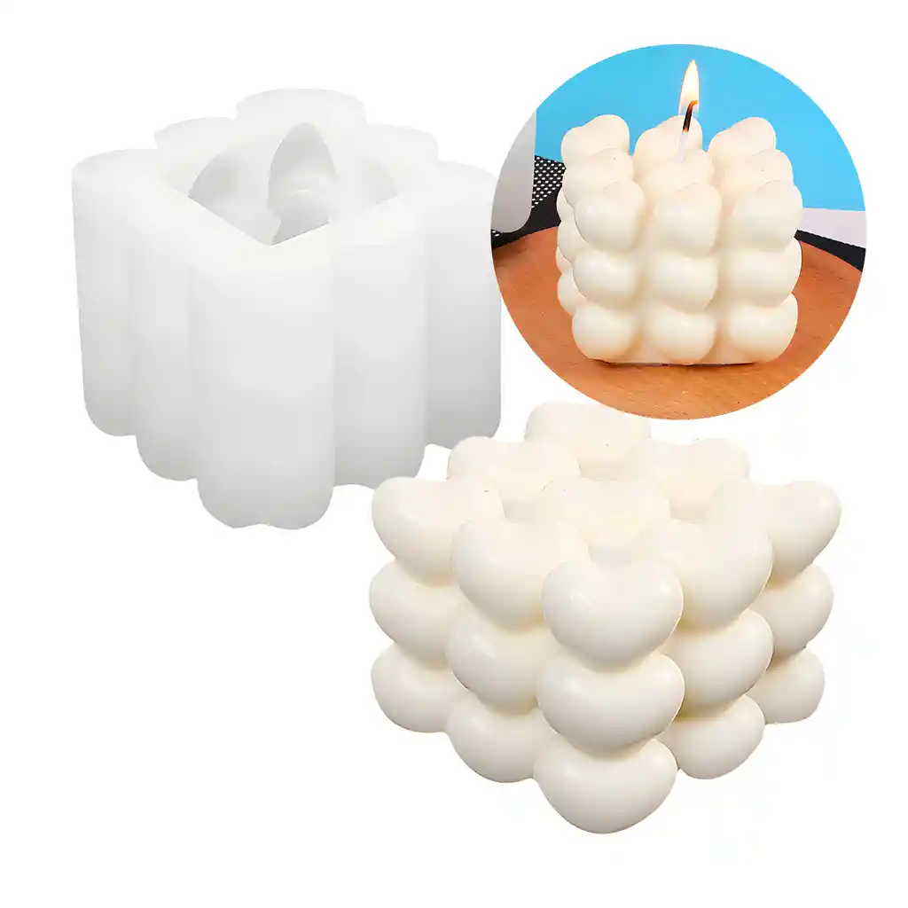 3 Moldes de Silicona Cubo de Corazones 7 X 6.3 CM Lleva tu creatividad a otro nivel con este molde de silicona. Perfecto para velas de parafina, cera de soja, resina u otros materiales artesanales, este molde te permite crear piezas únicas, llenas de encanto y detalles. - Flexible, duradero y fácil de desmoldar - Ideal para proyectos artesanales, regalos personalizados o decoración Apto para cera caliente, yeso o jabón Especificaciones: Tamaño del molde: 7 X 6.3 CM Diseño: Cubo de Corazones Color: Blanco Material: Silicona. Uso: Velas, decoración. Contenido de paquete: 3 Molde de Silicona Cubo de Corazones