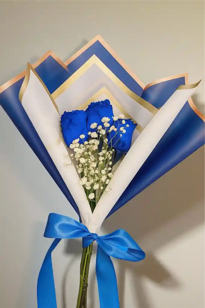 HERMOSO ARREGLO FLORAL DE 3 ROSAS AZULES PARA CUALQUIER OCASIÓN