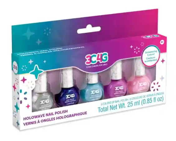 Crea una manicura deslumbrante y perfectamente reflectante con estos modernos esmaltes de uñas no tóxicos en acabados holográficos, brillantes y brillantes. Incluye 5 colores de 5ml cada uno. Se recomienda de 8 años en adelante.