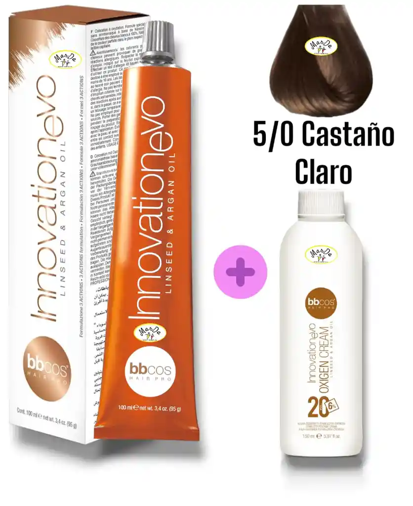 5/0 Castaño Claro Tintura Innovationevo 100 Ml + Agua Oxigenada 20 V Bbcos