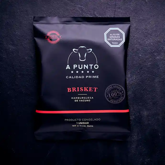 CON EL MEJOR CORTE DEL TAPAPECHO, ESTA HAMBURGUESA ESTA ELABORADA 100% DE CARNE DE VACUNO PRIME. HAMBURGUESA BRISKET 100% CARNE DE VACUNO A PUNTO PRIME. ELABORADA CON EL MEJOR CORTE DE TAPAPECHO A PUNTO. LA SELECCIÓN PRIME Y PREPARACIÓN DE ESTE PRODUCTO, DA COMO RESULTADO UNA HAMBURGUESA JUGOSA, BLANDA Y DELICIOSA. PREPÁRALA A LA PARRILLA, HORNO, SARTÉN O PLANCHA.