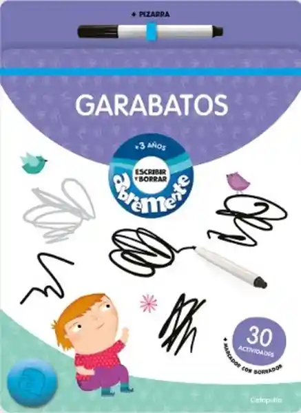 Una Nueva Colección de Libros Para Niños y Niñas de 3 a 6 Años Con Actividades y un Marcador Con Borrador Para Entrar en el Mundo de la Lectoescritura. Propuestas Originales Para Identificar y Trazar Garabatos Dibujos Letras Números Grafísmos y Formas y Aprender a Practicarlos Con Soltura Una y Otra Vez. Propuestas Creativas Para Divertirse y Compartir Jugando Con Actividades Que Fomentan la Lectoescritura. Tamaño: 20 x 24 cm (Pizarra 20 x 27 cm) 26 Páginas Formato: Abanico Incluye: Una Pizarra Elástico de Cierre Contornos Con Relieve Para Recorrer Los Trazados Con Los Dedos Personajes Que Acompañan el Recorrido Del Libro y Las Actividades un Marcador Con Borrador Que Permite Escribir y Borrar en Estas Páginas Una y Otra Vez.