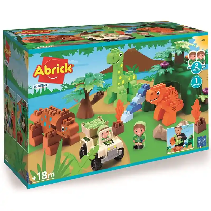 Edad: 18 meses + El juego cuenta con 1 cueva, 1 vehículo, 2 personajes y bloques para construir 3 dinosaurios y la ambientación jurásica. Este juego estimula el desarrollo de las habilidades motoras finas, la imaginación, la creatividad y el pensamiento lógico espacial. Material: plástico de alta calidad según normativa de seguridad europea. Fabricado en Francia por Ecoiffier.