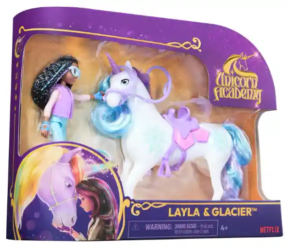 El set de juego ofrece un jinete de unicornio detallado de aprox. 11 cm de alto, así como un unicornio con sillín y riendas extraíbles que dan vida a las emocionantes aventuras de la popular serie de Netflix. La muñeca tiene 7 articulaciones para que pueda adoptar poses de acción realistas y montar en su unicornio. El unicornio se puede quitar para un juego de rol realista. El unicornio tiene una melena y una cola largas y sedosas que se pueden peinar, trenzar y decorar con el cepillo incluido. Contiene 1 muñeca de aprox. 11 cm, 1 unicornio de aprox. 12 cm con sillín y riendas extraíbles, 1 cepillo para el pelo. Los jinetes y sets de unicornio de Unicorn Academy no solo deleitan a los fanáticos de la serie de Netflix. También son el regalo ideal para todos los amantes de los caballos y los unicornios a partir de 4 años que quieran sumergirse en historias imaginativas. Se recomienda de 4 años en adelante.