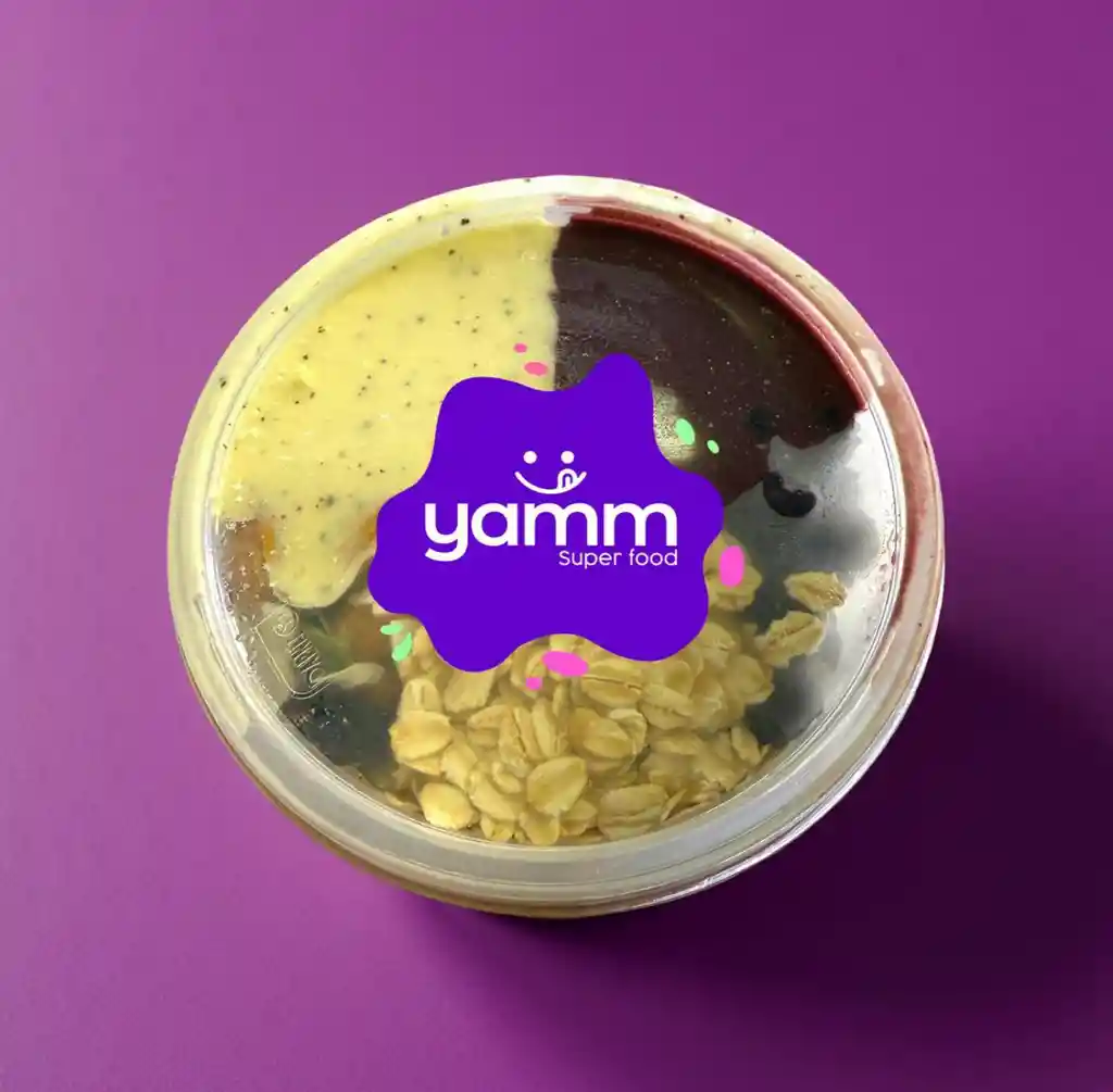 Base: sorbete de Acai y maracumango Agregado: avena integral, arándano, mix frutos secos producto congelado vegano esperar antes de consumir