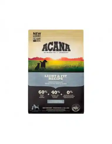 ACANA Light & Fit está especialmente indicado para perros adultos (1 año o más), de todas las razas y tamaños, y con una actividad física moderada. Hecho con pollo fresco, huevo de corral y lenguado del pacífico (60%), frutas y verduras maduradas al sol (20%), y avena de Alberta (20%) de bajo índice glucémico.
