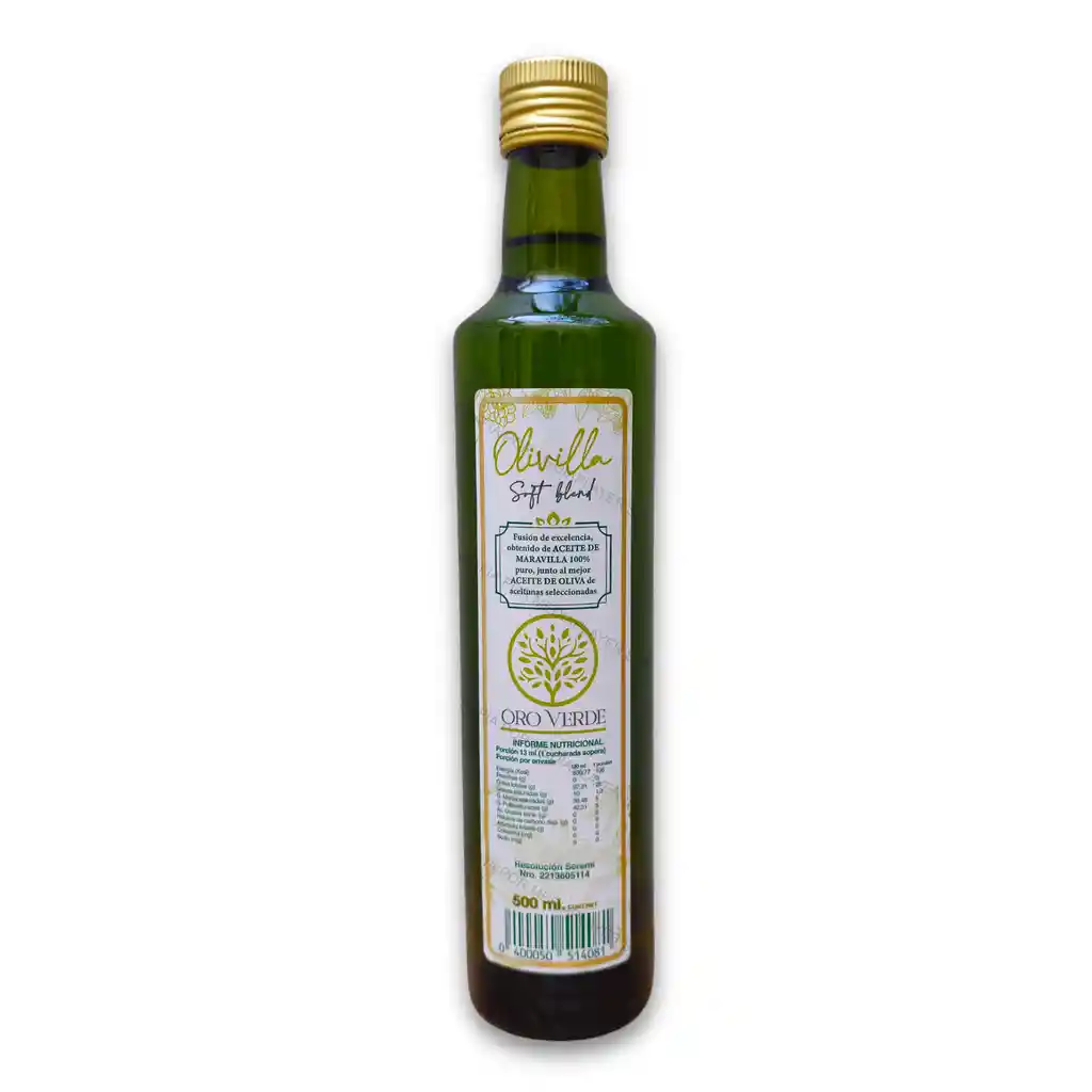 Aceite Blend de Oliva Maravilla Olivilla Oro Verde 500 ml | 100% Natural | Hecho en Chile Sabor, suavidad y salud en cada gota Descubre el equilibrio perfecto entre el carácter del aceite de oliva y la suavidad del aceite de maravilla con el Aceite Blend Olivilla 500 ML de Oro Verde. Esta mezcla cuidadosamente elaborada combina lo mejor de ambos aceites para ofrecerte un producto versátil, saludable y lleno de sabor. Ideal para cocinar, aliñar ensaladas o simplemente dar un toque gourmet a tus platos diarios, Olivilla es una opción equilibrada que cuida tu salud sin sacrificar el sabor. Beneficios del Blend Olivilla: Aceite de oliva: Rico en antioxidantes y grasas saludables. Aceite de maravilla (girasol): Ligero, neutro y con alto contenido de vitamina E. Textura suave y sabor delicado, ideal para toda la familia. Presentación práctica de 500 ML, perfecta para el uso diario. Déjate conquistar por la fusión de lo natural con lo saludable. Olivilla de Oro Verde: el toque justo de sabor y bienestar.