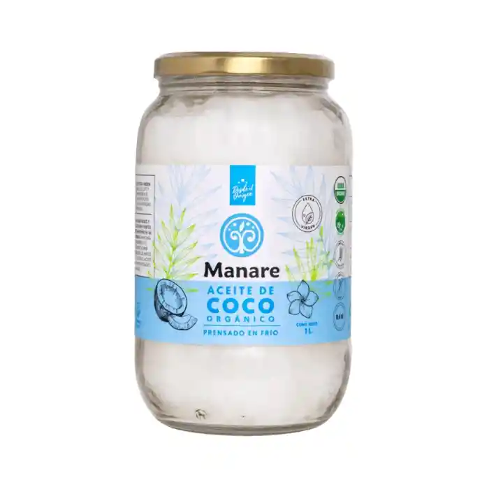 Se solidifica cuando la temperatura ambiente baja los 25 grados Celsius aproximadamente, y se pone líquido cuando se supera esa T°. Esto es completamente normal y no se ven sus alteradas sus propiedades nutricionales. No está refinado. No contiene preservantes. No está blanqueado ni desodorizado ¿Sabias qué? Antioxidantes: tiene propiedades antioxidantes ya que es muy estable y reduce la necesidad de vitamina E, al contrario de otros tipos de aceites que generan una deficiencia de ésta. Algunos estudios indican que el aceite de coco mejora la habilidad del cuerpo para utilizar los ácidos grasos Omega 3. Glicemia: el consumo habitual de aceite de coco permite pasar varias horas sin tener qué comer y mantener una adecuada cantidad de azúcar en la sangre, evitando así, síntomas de hipoglicemia. Glándula tiroides: algunas grasas insaturadas y cocinadas generan una baja en el metabolismo, contribuyendo a la aparición de síntomas hipotiroideos y el aumento de peso. El aceite de coco utilizado con regularidad ayuda a restablecer el funcionamiento de la tiroides y acelera el metabolismo, contribuyendo a la pérdida de peso. Piel: el aceite de coco utilizado como loción, ayuda a proteger la piel y es altamente hidratante. Usos Se recomienda consumir de 1 a 4 cucharadas diarias. Lo puedes utilizar para preparar aderezos para ensaladas, agregarlo a cualquier tipo de batido (de frutas, de superalimentos, de chocolate, etc.), y para lo que más nos gusta a nosotros es para cocinar, ya que al ser estable, no se vuelve rancio al someterlo a altas temperaturas, por lo que sigue siendo muy saludable incluso cuando cocinas o preparar productos horneado con él. Ingredientes y Alérgenos Ingredientes: 100% aceite de coco orgánico. Conservar a temperatura ambiente en un lugar fresco y seco. Manchas en el fondo del envase en tonos amarillos y/o marrones ocurren debido a la presencia de partes naturales del coco en el aceite y no afectan las propiedades ni calidad del producto.