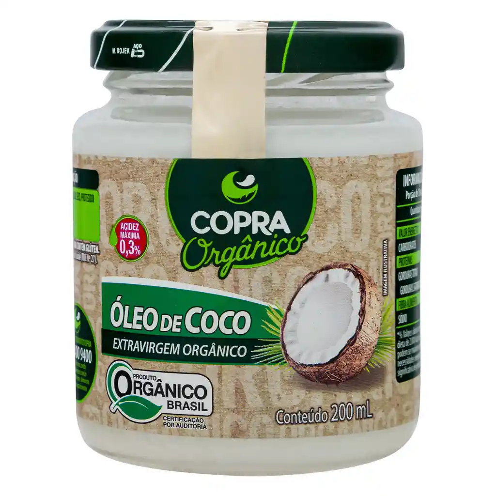 Extraído de la pulpa de coco, Aceite de Coco Extra Virgen Orgánico Copra está certificado con el sello orgánico ECO7 de Brasil. Vegano, es prensado en frío, 100% natural, tiene una acidez máxima de 0.3%, no contiene gluten, conservantes, promueve el bienestar y el cuidado de la salud. Ideal para estar en la cocina brasileña, es la opción correcta para aquellos que desean preparar postres y ensaladas más refinados, además de darle un toque especial de aroma al café. Ingredientes Aceite de coco (Cocos Nucifera L.) Conservación Mejor almacene su aceite manteniéndolo en un lugar seco, protegido de la luz y lejos de cualquier fuente de calor. Consejo importante El aceite de coco se solidifica a temperaturas inferiores a 25ºC, para volver a la normalidad solo con un "baño de agua".