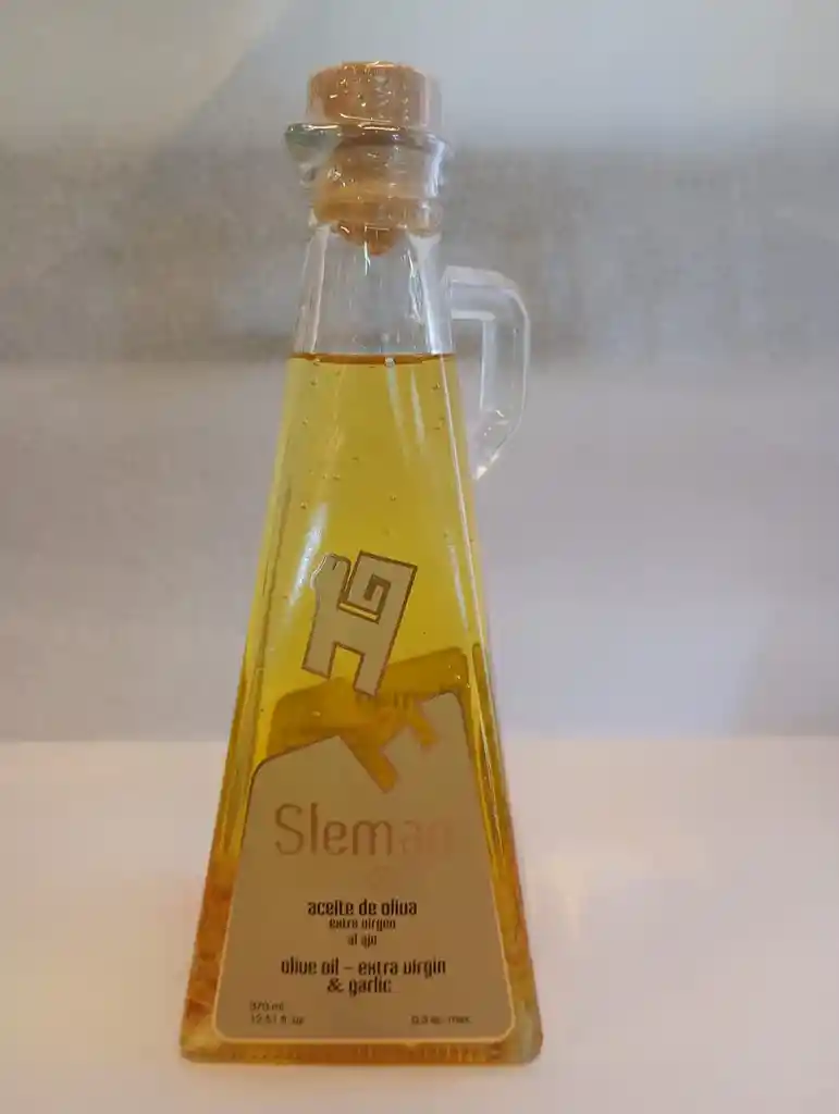 Aceite de oliva extra virgen con ajo, primer prensado en frío y 0,3 de acidez máxima