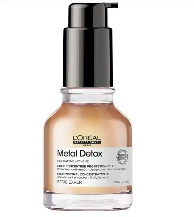 El nuevo aceite de la gama Metal Detox protege la fibra de las partículas metálicas, su textura es absorbida instantáneamente por la fibra capilar sin otorgarle peso adicional al cabello.