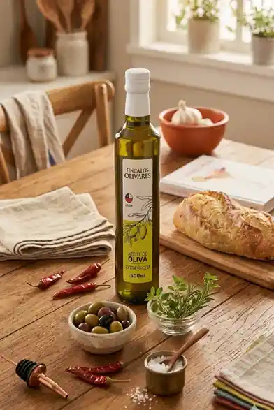 Finca dos Olivares Aceite de Oliva Chileno 500 ml Variedad: Principalmente arbequina y picual Origen: Valle de Maipo - Chile Extracción: Primero, prensado en frío natural mediante centrifugación Duración: 4 años desde la fecha de fabricación Color: Verde con matices dorados Notas de cata: Frutado: Por encima de la media Sabor: Ligeramente picante y con sabor a aceitunas recién recogidas Aroma: aceitunas recién cosechadas Acidez máxima: 0,3% Sugerencias de consumo: aceite estable para cocinar y ensaladas Presentaciones: botellas de cristal de 500 ml