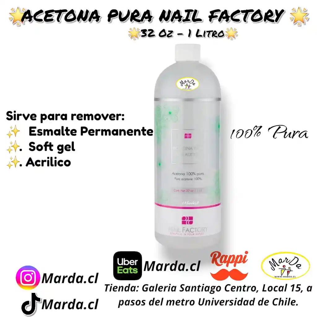 ACETONA PURA PARA UÑAS 32 oz 1 LITRO NAIL FACTORY