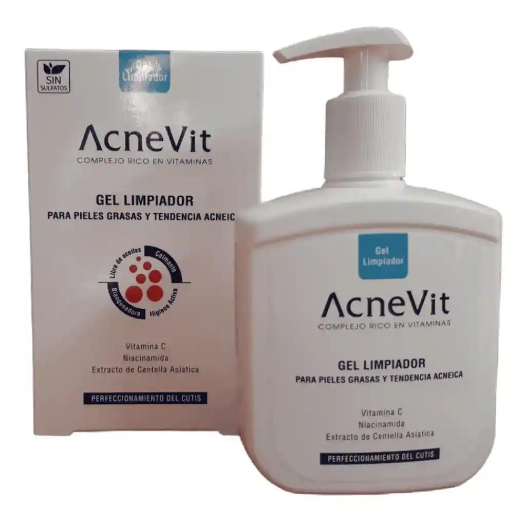 El correcto cuidado de la piel juega un papel importante en el tratamiento del acné, y el primer paso es un lavado diario que combata las múltiples causas de brotes. El Gel limpia suavemente los poros. Gracias a la combinación efectiva de niacinamida, extracto de hoja de romero, extracto de centella asiática, extracto de semilla de uva y alantoína, ayudan a prevenir la irritación, la sequedad excesiva e hidratan y protegen la piel. Probado dermatológicamente / sin aceite / no comedogénico (no obstruye los poros ) / sin colorantes / sin jabón Acnevit no contiene peróxido de benzoilo, ácido azelaico, ácido salicílico, antibióticos u hormonas. Estos pueden causar sequedad, irritación, ardor y picazón en la piel. Limpia suavemente los poros para una piel clara. Reduce la producción de exceso de sebo. Reduce el tamaño de poro. Minimiza el brillo y los puntos negros. La espuma suave se enjuaga fácilmente, sin dejar residuos que obstruyan los poros. Probado dermatológicamente / sin aceite / no comedogénico / sin colorantes / sin jabón Aplicar sobre la cara húmeda, evitando el área de los ojos. Masajear sobre la piel y luego enjuagar con agua. Usar dos veces al día. Se sugiere enjuagarse la cara con agua tibia.