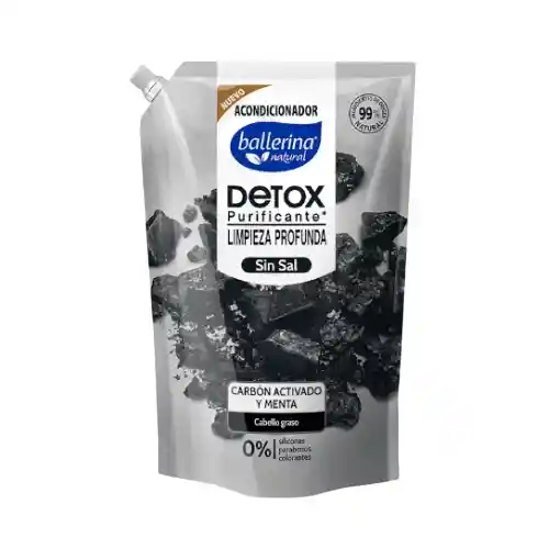 el aliado que tu cabello necesita para lucir sano y radiante. Su innovadora fórmula con carbón no solo suaviza, sino que también repara e hidrata cada hebra, brindándote el cuidado capilar que deseas. Características Destacadas: Suavidad garantizada: Disfruta de un cabello sedoso y manejable, gracias a su potente acción nutritiva. Reparación profunda: Combate los daños causados por el calor y la contaminación, devolviendo la vitalidad a tu cabello. Hidratación intensa: La fórmula enriquecida penetra en el cabello, asegurando una hidratación duradera. Transforma tu rutina de cuidado capilar con el Acondicionador Detox Purificante Ballerina. ¡Obtén un cabello hermoso y saludable en cada uso!