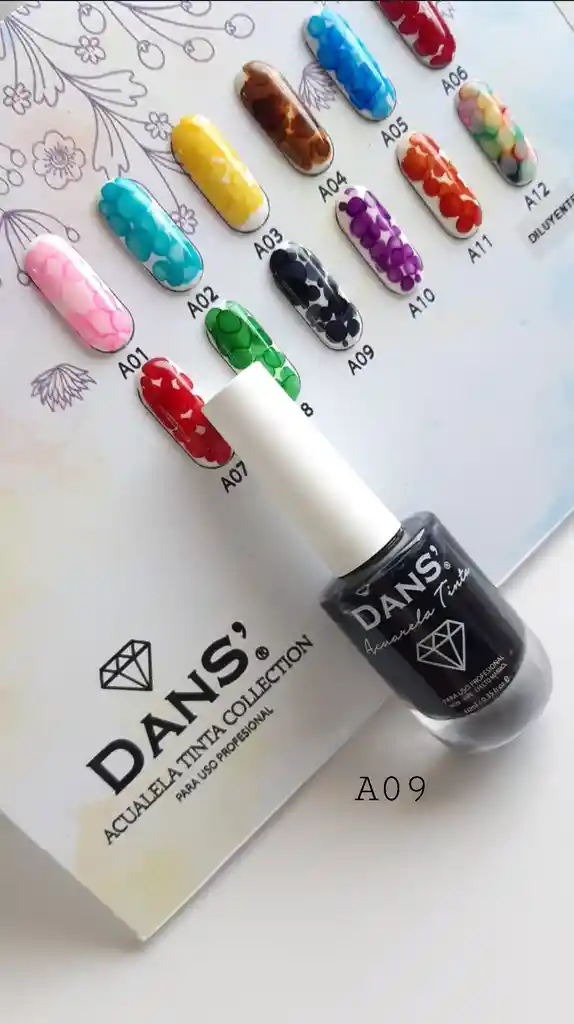 Los esmaltes Tinta acuarela DANS permiten realizar decoraciones para manicura tipo acuarela o watercolor, efecto mármol o marble effect, difuminados y degradados de manera fácil, que se pueden aplicar tanto en manicuras normales como en manicuras permanentes. Secado con Lampara UV LED