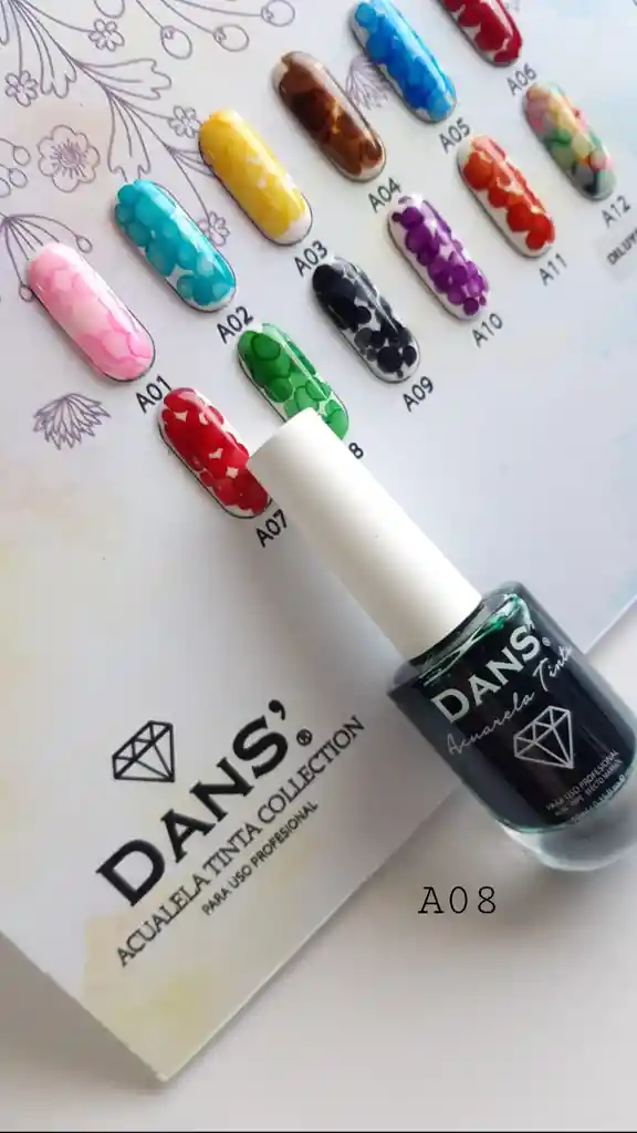 Los esmaltes Tinta acuarela DANS permiten realizar decoraciones para manicura tipo acuarela o watercolor, efecto mármol o marble effect, difuminados y degradados de manera fácil, que se pueden aplicar tanto en manicuras normales como en manicuras permanentes. Secado con Lampara UV LED