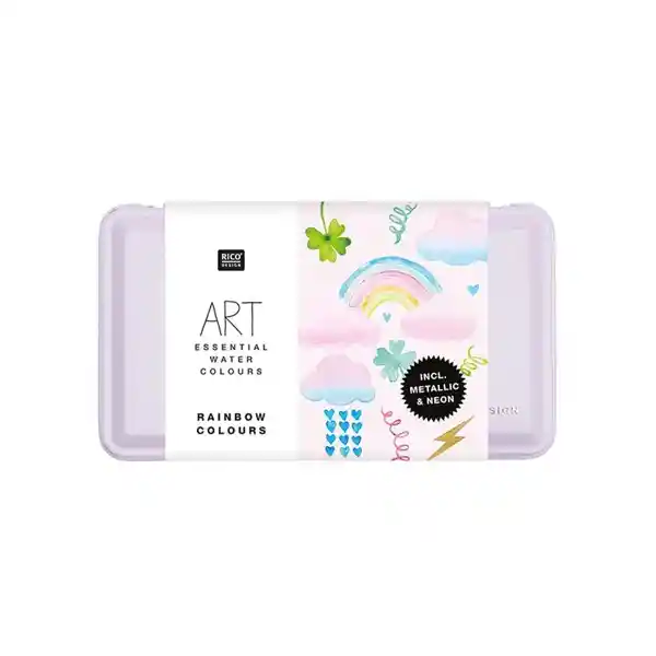 Set de acuarelas con colores NEON & METALICOS. Ideal para los más atrevidos o quienes quieran hacer un proyecto único y especial. Incluye colores brillantes, transparentes e intensos con un gran poder colorante. Acuarelas de alta calidad, durabilidad, sin olor, con alta resistencia a la luz y excelente solubilidad en agua. Set contiene 12 colores: 6 Metalizados y 6 Neón.
