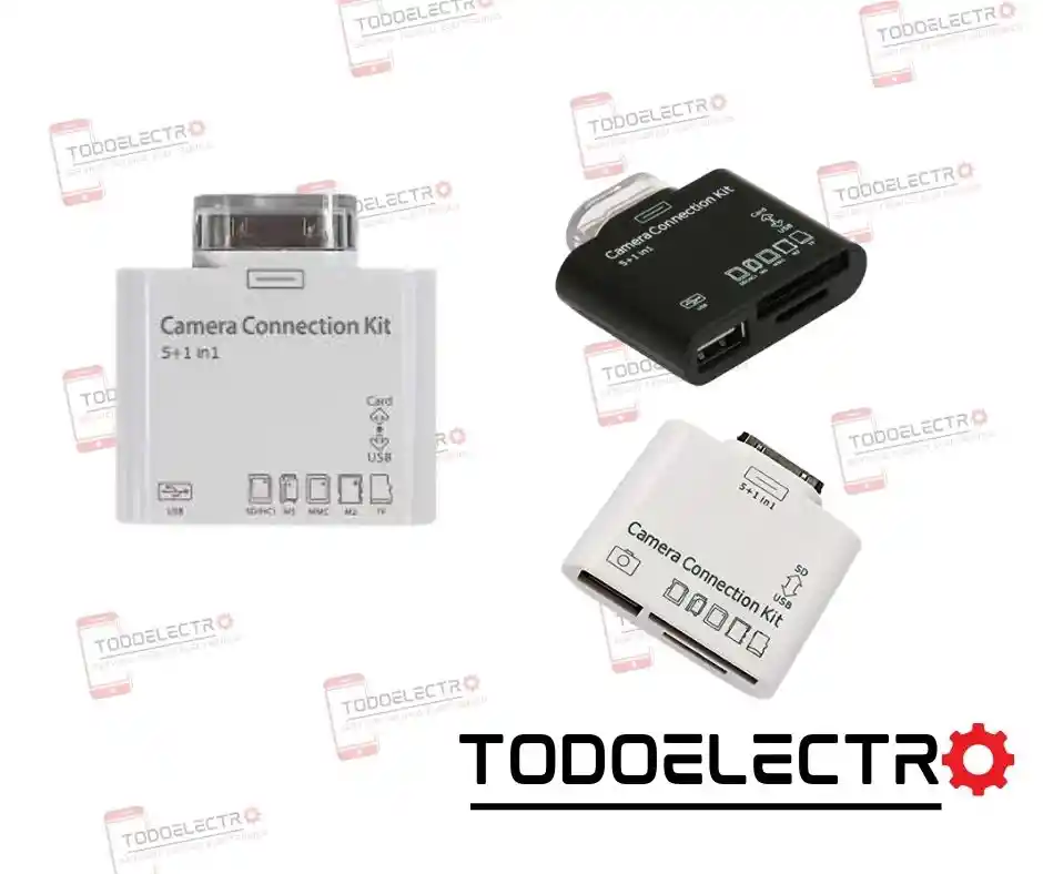 El kit de conexión de cámara par a iPad de Apple es un adaptador que permite conectar tus cámaras fotográficas a través de USB o tarjetas SDHC en el iPad conectando este adaptador al conector de base del iPad. Con cable USB o directamente desde una tarjeta SD de su cámara con este kit de conexión es increíblemente fácil descargar fotos desde su cámara digital a su iPad así podrá verlas en la espectacular visualización del iPad y compartirlas con tu familia y amigos. - 5 en 1 kit de conexión de cámara para iPad - Lector de tarjetas para el ipad con SD (HC), MS DUO, MMC, M2, T-FLASH (TF) - Conector de la cámara cuenta con un puerto USB - Se puede conectar teclados externos. - Formatos estándar de la foto, incluyendo JPEG, RAE. - Entrada externa favorable cuando conecte el teclado normal del USB con iPad Con el kit iPad camera connection, usted puede descargar fácilmente las fotos desde la cámara digital a su iPad.