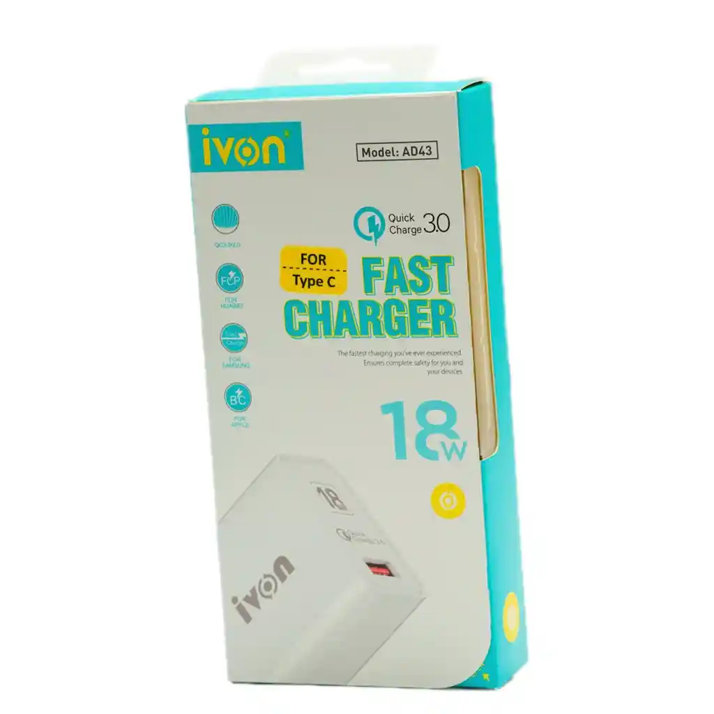 Carga rapida, 3.0A, 18 W, Certificado SEC, Incluye cable usb de carga TIPO C, El cargador garantizado por 1 año.