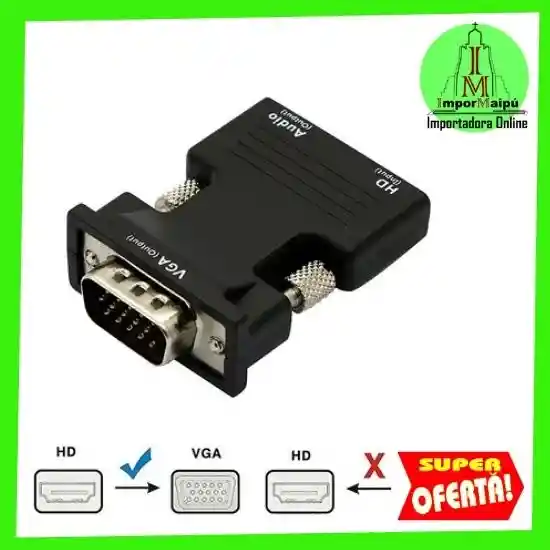 Somos IMPORTADORA MAIPÚ, en Villa Los Héroes desde 2021 ¡Las MEJORES Garantías 🤝, Buenos precios, por una “Economía Empática”! 😍 ✅ 30% DCTO ¡en la semana de tu cumpleaños en toda la tienda! 🥳🎁 ✅ 30% DCTO adultos mayores (65+), personas con capacidades diferentes y bomberos y personas de bajos recursos (40% vulnerable). ¡Para siempre! 💪🏻👵 🧑🚒 ✅ 30% DCTO, tercer producto igual por compras en página web🔥 ✅ $5.000 precargados en una gift card por compras sobre $30.000 🤩 ✅ 15% DCTO primera compra al seguirnos y publicar historia 🤯 ✅ 10 meses garantía y 20 días satisfacción 😎 ✅ Pago contra entrega 🤝 💵 ✅ Si lo encuentras más barato (tiendas establecidas), ¡Mejoramos el precio! 💰 Visítanos y descubre +600 productos y + Beneficios 😱 (Promos no acumulables. Bases y condiciones en web) Despacho x adicional. PRECIOS X MAYOR 🤑. Acc. de Bicicletas 🚵, autos 🚙, PC’s 💻, celulares 📲, Relojes ⌚️, Moda, etc. 😍 @IMPORMAIPU 📷 Insta: goo.su/52lI 👍🏻 Face: goo.su/52lK 🎥 Tik Tok: goo.su/KImk ✅ Wtps: +56946828340 ó wa.link/ifjwf4 🛒 Web: www.importadoramaipu.com Encuentranos en Mercado Libre, ¡somos Mercado Líder! ¡Síguenos por favor! MEDIOS DE PAGO: Tarjetas Crédito y Débito, Efectivo, Transferencia, BitCoin, Dolares. Boleta y Factura. FORMAS DE ENTREGA: Retiro en Maipú, o por adicional a Domicilio o Metro según comuna, a regiones u otros países, por starken u otros. Adaptador para HDMI a VGA sirve para PC , notebook, computadores, monitores , TV. Es macho hembra, funciona como conversor entre las distintas entradas y salidas de audio y video y play 4 La señal y entrada compatible con HDMI se convierte completamente en vídeo VGA gracias a este adaptador HDMI a VGA además de salida de audio Jack 3.5 o también conocida como Auxiliar o de audífonos. Su Diseño Ultra pequeño, es la primera opción para llevar, ya que es directo, sin cables. Admite Plug and Play, y no requiere fuente de alimentación de poder. Adaptador para HDMI a VGA para PC y notebook computador y TV macho hembra, sirve para conversor audio y video y play 4 Adaptador VGA a HDMI, Adaptador HDMI a VGA, VGA a HDMi adaptador, VGA HDMI, Conversor VGA a HDMI, Conversor VGA a HDMI con audio, Transformador HDMI a VGA, Convertidor VGA a HDMI, Convertidor HDMI a VGA, cable hdmi a vga, cable hdmi a vga macho, cable hdmi a vga adaptador de hdmi vga conversor hdmi vga, cable vga a hdmi, cable vga a hdmi con audio, cable vga a hdmi macho "Especificaciones Técnicas: Compatibilidad de Resolución: Hasta 1080P (1080p Full HD), incluyendo 480P/ 576P / 720P para Monitores o Proyectores HD. Compatibilidad Dispositivos: Adecuado para todos los dispositivos de interfaz de entrada HDMI y salida VGA. Instalación: El chip de conversión integrado mejora la compatibilidad con todos los sistemas operativos, es Diseño Plug and Play no necesita configuración previa. Largo cable: 15cm aprox. Versión: sin Audio sin alimentación Entrada: HDMI tipo macho un 19pin Salida: VGA hembra Longitud del Cable: aproximadamente 160mm Color: negro Material: ABS de Alta resistencia y PVC Tamaño: L45mm * W45mm * H15mm Paquete Incluye: 1 x Adaptador VGA a HDMI"