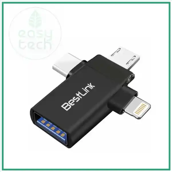 Este OTG te servirá para contar con un sólo adaptador para diversas conexiones. Posee conexión Micro USB, USB C y Lightning, a USB 3.0. Este adaptador OTG permite que conectes a tu smartphone o tablet, periféricos por USB o para poder conectar a tu notebook o PC, con USB C, periféricos USB. - OTG 3 en 1 Bestlink - Conexíones de entrada: Micro USB, USB C y Lightning - Conexión de salida: USB 3.0 - Los 3 puertos pueden funcionar simultáneamente - Tamaño adaptador: 3 x 1.5 x 0.7 cms - Incluye orificio para poder colgarlo en llaves
