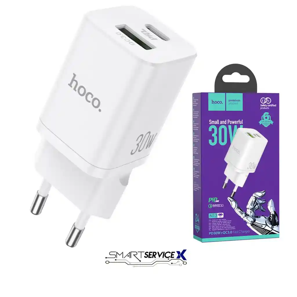 • Marca: HOCO. • Modelo: N13. • Tipo: Cargador de pared • Compatibilidad: USB-C y USB. • Compatible con: PD30W, PPS, QC3.0/QC2.0, HUAWEI FCP, SCP, SAMSUNG AFC, iPhone. SOPORTA MAS DEL 99% DE SMART PHONE AND TABLETS • Color: Blanco. • Entrada: AC100-240V 50/60HZ 0.8A MÁX. • Salida: USB: DC5V/3.0A, DC9V/2.0A, DC12V/1.5A (18W) Tipo-C: DC5V/3.0A, DC9V/3.0A, DC12V/2.5A, DC15V/2.0A, DC20V/1.5A (PD 30W). Salida total: 5V / 3.0A MÁX • Soporte para: PD3.0, QC3.0 / QC2.0 • Material: PC ignífugo. ===NO INCLUYE CABLE===