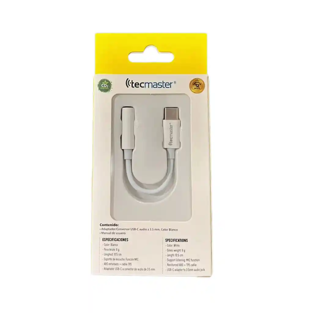 Adaptador USB C a minijack 3.5mm digital Aluminio Blanco. Adaptador Conversor de audio Tipo-C a Conector audio compatible con funcion MIC manos libres, Jack 3.5 mm. Caracteristicas: Color: Blanco. Peso bruto: 6grs. Longitud: 10.5 cm. Soporte de escucha: Funcion MIC. ABS reforzado + cable TPE. Adaptador USB-C a conector de audio de 3.5 mm