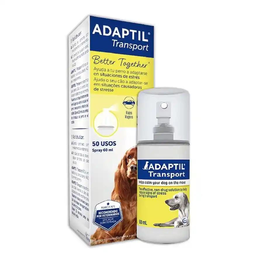 Adaptil ayuda a que la visita al veterinario o a la peluquería canina sea menos estresante. Resulta cómodo y práctico para situaciones fuera de casa. Adaptil Spray se puede pulverizar directamente en la cama del perro, en la jaula de transporte, residencias caninas y en el auto. Nunca plicar directamente en el perro y nunca lo atomizes en la transportadora si tu peludo está dentro. Adaptil es una copia de la feromona que libera la madre después del parto para calmar a sus cachorros y conseguir que se sientan seguros a su lado. esta feromona consigue un efecto apaciguador en situaciones angustiantes para mascotas. Ofrece ayuda en muchas situaciones, tanto en casa como fuera de esta, si necesita un apoyo en un momento puntual o si se requiere un tratamiento a largo plazo. ADAPTIL es una marca que ha sido creada para ayudar a perros en una serie de situaciones difíciles que pueden tener que afrontar durante su vida. Algunos de estos desafíos incluyen fuegos artificiales, la primera noche de los cachorros lejos de su madre, clases de educación, viajes en auto, estancias fuera de casa, entre otros muchos más. Es por esto que nace Adaptil y que crea su línea especilamente formulada para ayudar a tu peludito a que se sienta mucho mejor. Las ventajas de este producto son: Seguridad: Gracias a la feromona que tiene logra transmitir seguridad y tranquilad tanto en cachorros como en perros adultos cuando se enfrentan a situaciones estresantes.