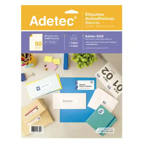 Etiquetas Blanca Adetec Rect. 6Un 13X40