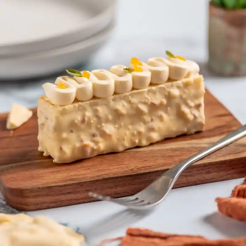 Redefine tu experiencia de sabor con nuestra adorada de mango y maracuyá sin azúcar, un equilibrio perfecto entre la dulzura tropical y una suavidad cremosa. Este postre gourmet se elabora con bizcocho de harina de trigo y almendras, gel artesanal de mango-maracuyá, y una cremosa capa de chocolate blanco. La cobertura crujiente de almendras tostadas y chocolate blanco le da un toque especial. Todo endulzado con alulosa, sin conservantes ni preservantes. ¡Disfruta de esta deliciosa combinación de sabores y texturas en una torta que hará de cualquier momento un instante especial!