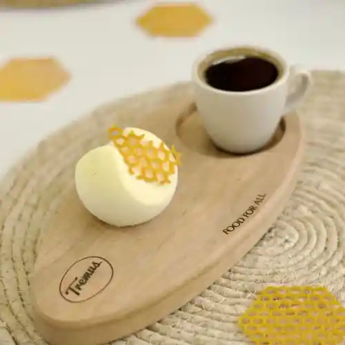 Un suave bizcocho de miel, relleno con una cremosa mezcla de yogurt natural, cubierto con una mousse de miel delicada. Su cobertura de chocolate blanco con efecto terciopelo añade una textura aterciopelada, creando un postre suave y reconfortante, perfecto para los amantes del sabor natural y dulce de la miel.