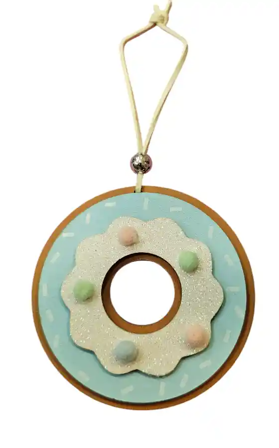 Hermoso adorno de madera colores pasteles forma dona Madera MDF Colores y pompones Para colgar en Arbol o donde Desees