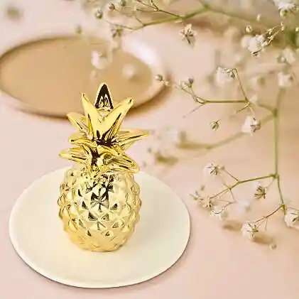 Piña dorada decorativa. Perfecta para añadir un toque tropical y elegante a cualquier espacio.
