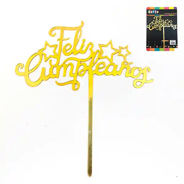 ADORNO PICK FELIZ CUMPLEAÑOS DORADO