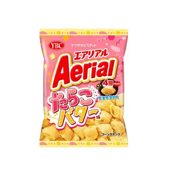 Un Aperitivo de Maíz de 4 Capas Hecho Con Nuestro Método de Fabricación Único. Este Producto Tiene Una Textura Ligera e Innovadora Creada Apilando Cuatro Finas Bases de Maíz. El Nuevo Sabor Aclamado ''sabor a Mantequilla Tarako'' Que Combina Perfectamente Con Aerial.