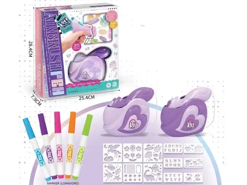 Lleva la diversión y la creatividad a todas partes con nuestro aerógrafo portátil! Este set incluye 6 rotuladores de colores y plantillas para inspirarte. Libera tu imaginación y crea obras maestras en cualquier momento y lugar. Ideal para expresar tu creatividad dondequiera que vayas. Medidas: 28x25cm caja
