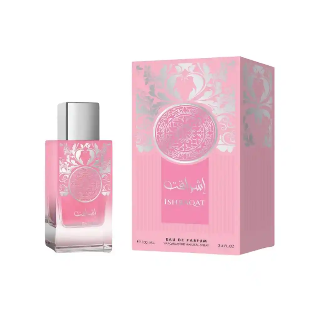 Afaq Ishraqat es una fragancia para mujer Eau de Parfum. Esta fragancia evoca la luminosidad y la belleza con sus notas cítricas y florales. Notas Principales: Notas de Salida: Bergamota, Naranja Notas de Corazón: Jazmín, Flor de Azahar, Peonía Notas de Fondo: Vainilla, Sándalo, Musc