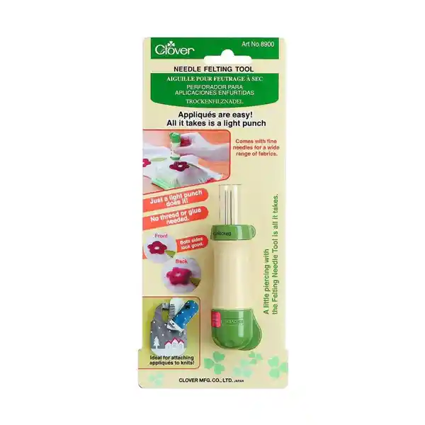 Los apliques son fáciles. Todo lo que se necesita es un golpe ligero. Coloque el aplique sobre la tela base y perfore ligeramente con la herramienta de fieltro de aguja. Las fibras se entrelazarán, uniendo el motivo a la tela maravillosamente. Contiene 5 agujas.