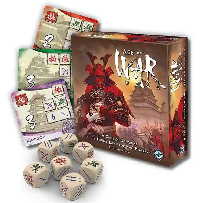 Es una época de guerras y contiendas en el Japón feudal. La dinastía imperial se ha debilitado y pequeños señores de la guerra atacan y saquean sin pudor a los clanes vecinos. Con cada batalla, los clanes se distancian cada vez más. La unificación es un recuerdo lejano en el corazón de las gentes de esta tierra. Para unificar de nuevo a los clanes, se necesita un líder que destaque entre los demás. ¿Serás tú ese líder? 7 dados especiales, 14 cartas, Hoja de instrucciones.